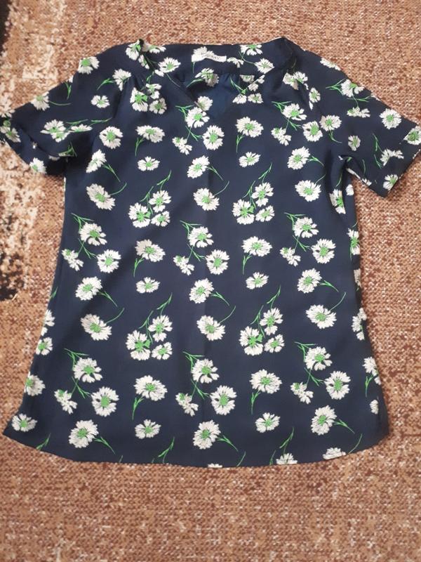 блуза с коротким рукавом синяя цветом легкая v-образный вырез горловины размер С