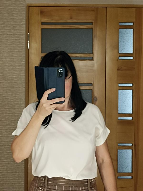 блуза женская шифоновая молочного цвета без застежки с короткими рукавами. 98-80-98