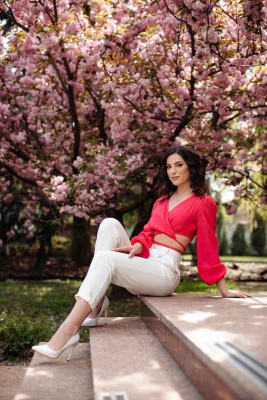 Брюки и блуза в размере xs в хорошем состоянии Надела на фотосессию, но брюки немного были удлиненные поэтому подкачала, так мне больше понравился. Блуза в размере xs-s, можно завязывать по разному абсолютно. Вместе очень красиво смотрится. Блузу можно как под юбку так и джинсы, очень эффектно смотрится