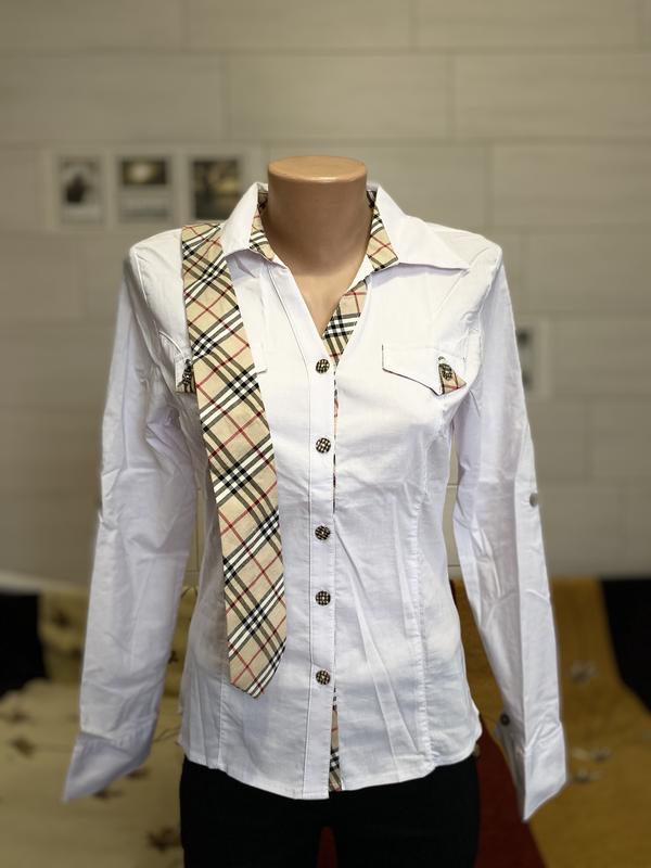 Тканина тягнеться, рукав піднімається на ґудзик, галстук в комплекті Розмір 42 ПОГ 92 ПОТ 82 Довжина по спині 61 Довжина рукава 60