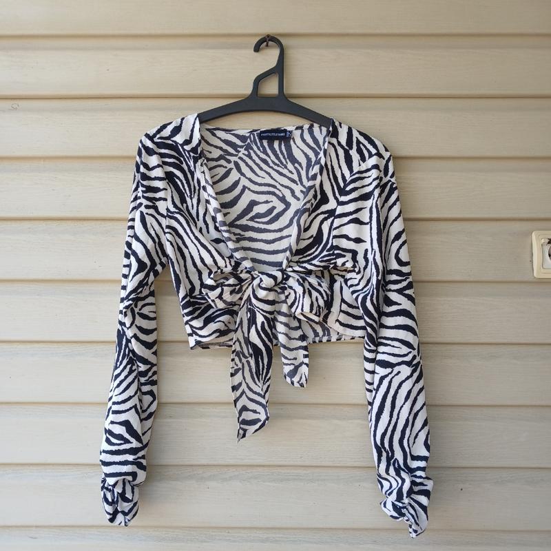 Трендовая рубашка с принтом зебры с завязкой спереди