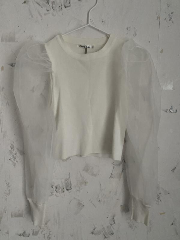 Укороченная блуза с шифоновым рукавом-фонарем. Остовая из тонкой вязки