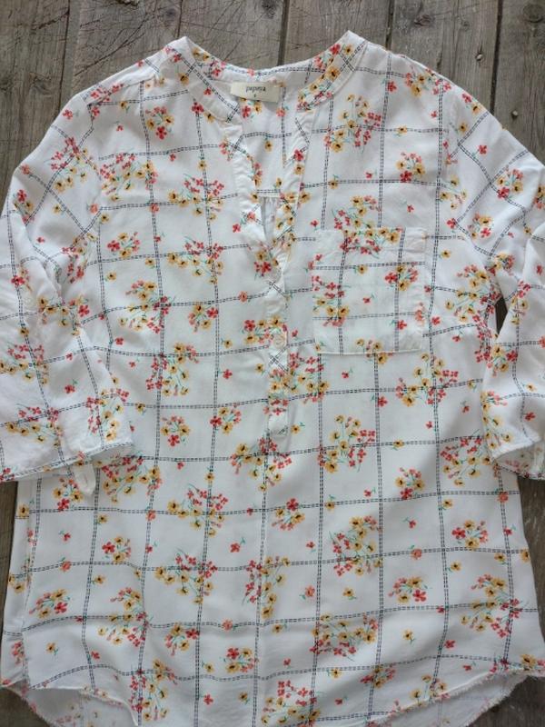 блузка состояние идеальное без следов ношение отличное качество 💯 вискоза размер указан 8 рукава 3/4 ткань приятная на ощупь без повреждений и диффектов фото с замерами указала Все вопросы определяйте перед ОПЛАТОЮ