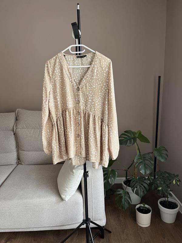 Блуза с очень приятной тканью Комфортная на весну/осень с длинным рукавчиком Идеально подходит девушкам с фигурой яблоко 🍏, потому что идеально скрывает животик Также мне кажется идеально подойдет беременным