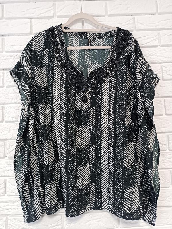 #No5# есть в наличии #код #. Описание: Длина 70 см Полуобхват груди 52 см Полуобхват талии 52 см Полуобхват низ 57 см Рукав от шеи29 см, вырез на рукав полуобхват 23 см Ткань не тяготится, в отличном состоянии, приятна к телу.Расшита бисером, пайетками,кам.