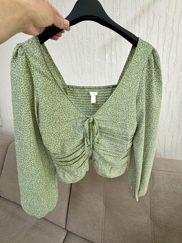 Блуза известного бренда H&M с открытой зоной ключицы, спереди немного собрана, на спинке оформлена резинкой, размер s, подойдет на m