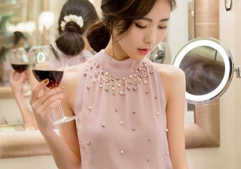 Літня жіноча шифонова блузка без рукавів з бісером, та перлинами розмір l