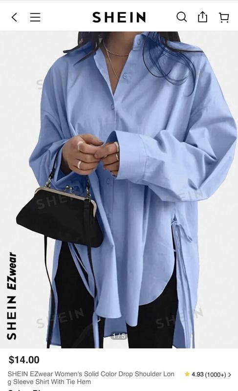Жіноча сорочка SHEIN. Голуба. Розмір L. Довж 72 і 85(ззаду довша), шир 61, рукав 58. Із завʼязками. Поліестер. Ідеал стан.