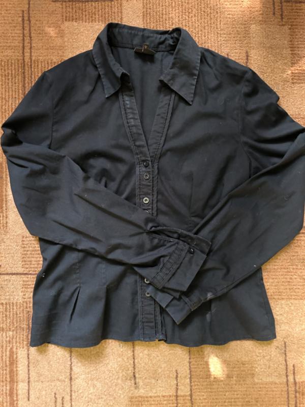 Блуза черного цвета со складками по бокам, и так же на спине. Плечи 44 см, под руками 50 см, талия 44 см, ткань стрейчевая. Высота 54 см