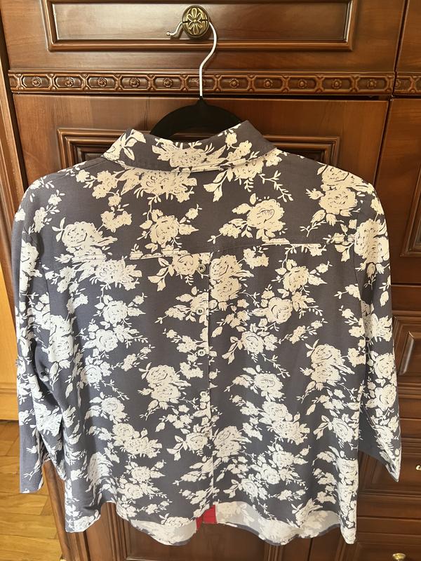Блуза серая в белый цветочек, рукав 3/4, длина 64, длина рукава 40, ПОГ 57, ПОГ 55