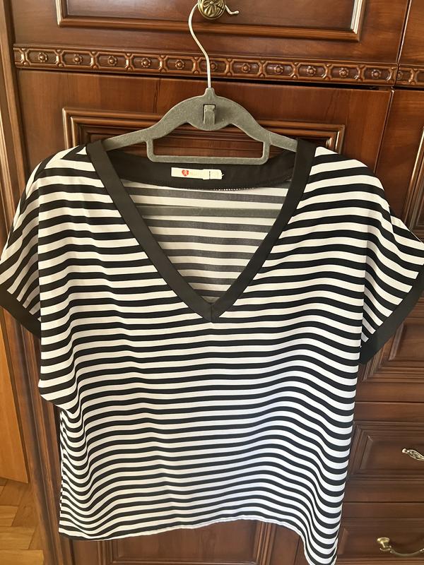Блуза белая в черную полоску, длина 65, ПОГ 55