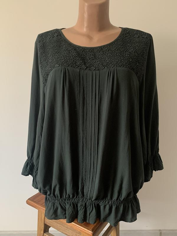 Базовая блуза в насыщенном зеленом цвете в идеальном состоянии размер-20 но маломерит длина 71 см, ширина 64 см, длина рукава от шеи 58 см ткань тоненькая хорошо ложится благодаря сетям выглядит нарядно цена 180 грн