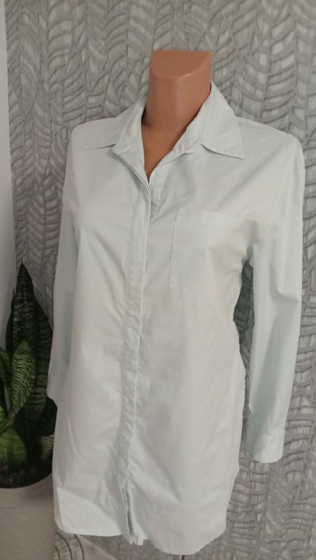 Сучасна блуза,з родзинкою ( бант можно зав'язати як позаду, так і спереду) Тканина бавовна,дуже якісна( про таку кажуть шо хрумка ) .Тканина приємно холодить шкіру. Гудзики брендовані. Розмір S . Колір ніжно блакитний .