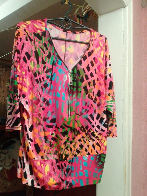 Продам блузочку на ОГ-65 см, рукав 3/4 летучая мышь, длина блузы-65см,размер 52-54,гарно сядет и на 50, удивительно тянется.