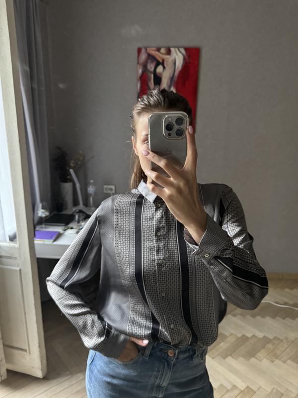 Блузка H&M. Шовкова. Размер указан на фото. Но на меньшую девочку тоже подойдет, я носила как оверсайз, можно как накидку сверху майки