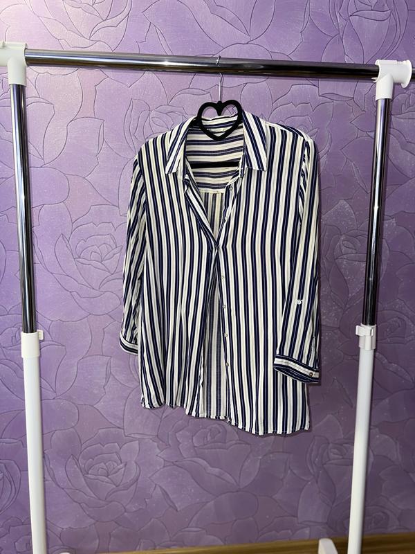 Распродажа гардероба! Продаю стильную женскую одежду разных брендов! Женская рубашка в полоску, размер s-m, рукав 3/4.