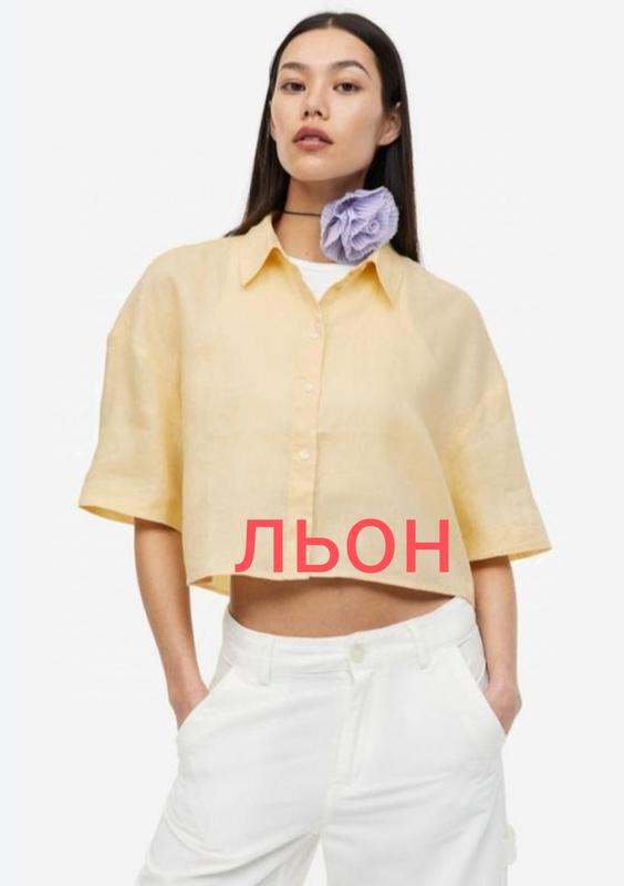 Короткая блузка оверсайз из воздушного льна. Рукав широкий до локтя, сзади сборка. Состояние новой вещи.