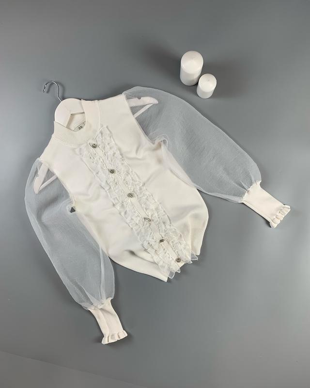 ❗️Нова❗️ Белоснежная блуза в рубчик с шикарными рукавами из органзы от бренда River Island. В жизни более яркая. Какие-то на высшем уровне. ▪️Состав: 100% полиэстер ▪️Размер: S ✍️Замеры: Хорошо тянется ПОГ-40см Длина рукава-60см Длина изделия-55см