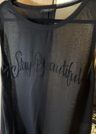 Блуза італійського бренду Twin-set,з прозороі тканини чорного кольору,знизу можна регулювати по ширині.з упааовочною сумочкою,,в ідеальному стані , розмір М-L