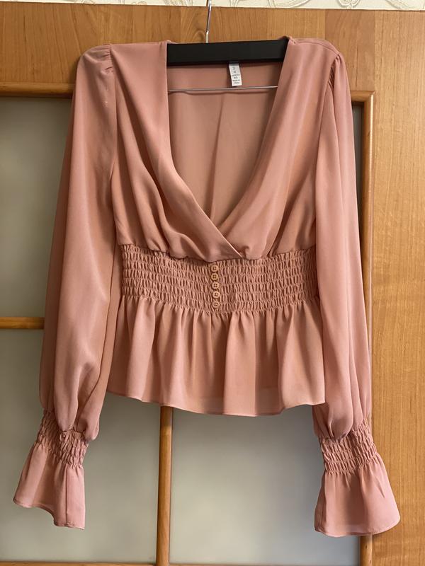 Блуза топ женская, цвет персик пудра, размер XS. (рукав от плеча 64 см, рукав свободный на резинке, в поясе резинка, длина от плеча 52 см)