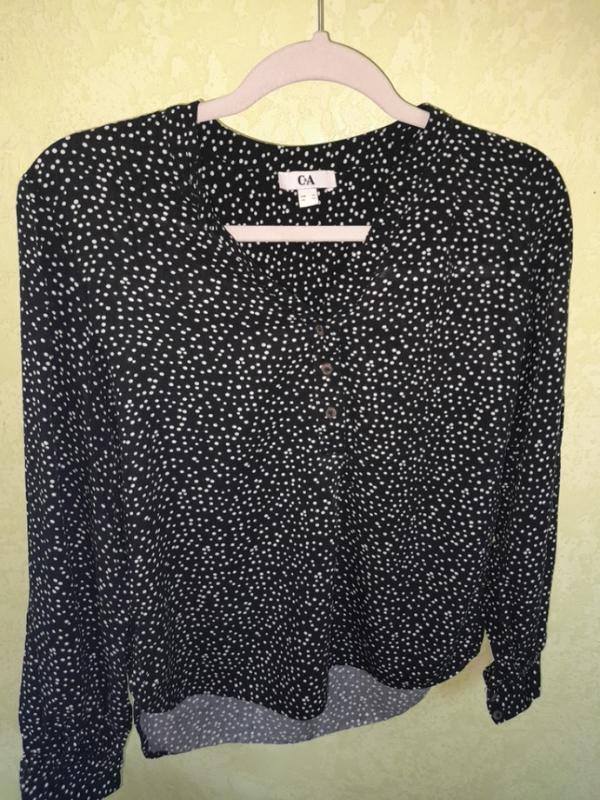 Очень качественная, легкая блузочка. ПОГ 51см, довжина 58 см. РУКАВ 57 см.