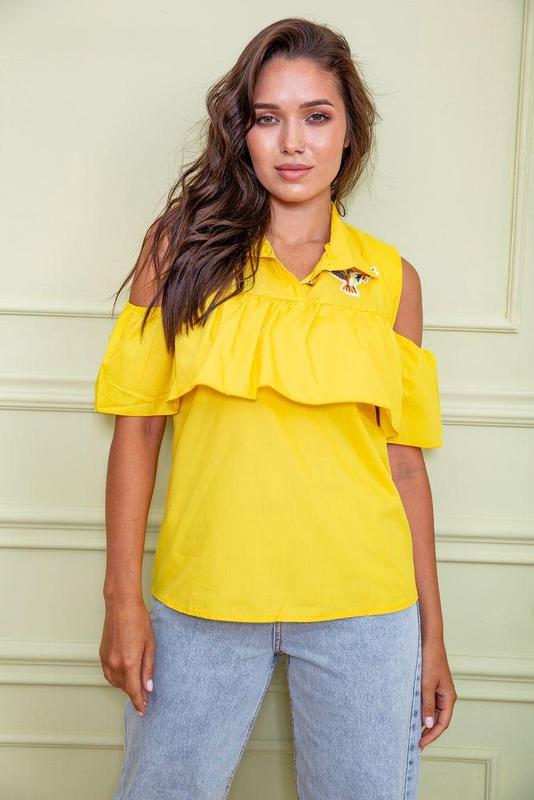 Нарядная блуза с рюшей, желтого цвета, 172r23-1