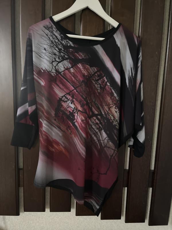 📌Мінімальна сума замовлення 100 грн Розмір не вказаний складник)-відсутній Тканина приємна на дотик, м‘яка, тягнеться Фасон асиметричний, рукав кажана Пог-74, Пот-58 Поб-( низ)-53 Рукав від плеча-57 Довжина по спинці-68