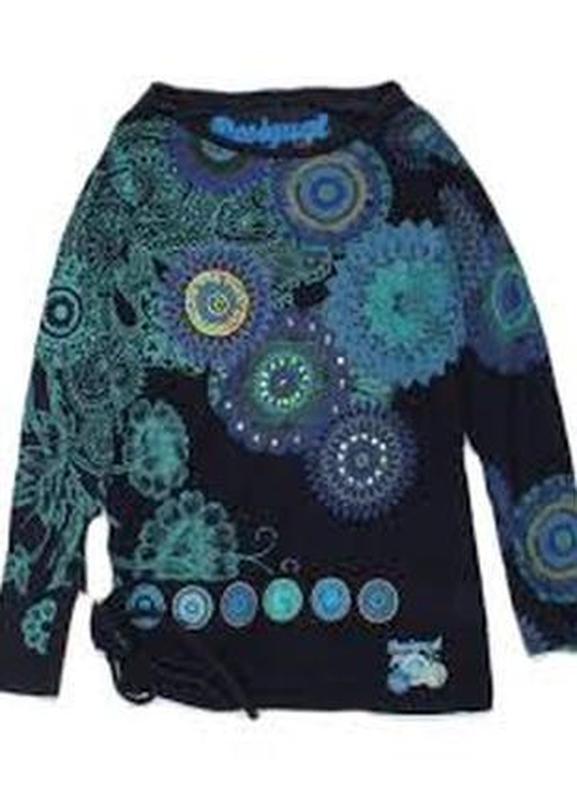 Красивая кофта -туника в интересный принт.Сочетание темно синего цвета с бирюзой,делает ее очень привлекательной и женственной. Бирка срезана,думаю подойдёт на размер М-Л Меряйтесь по замерам Длинна 70 Плечи 38 Пог45 Пот44 Поб 46 Рукав 63 Материал ещё тянеться хорошо Состав: Котон, Доставка: 🚌-доставка укрпочта и НП 👗-возврата и обмена нет 💰-оплата на карточку Приватбанка 👌-подписывайтесь и смотрите другие мои вещи 👜🥾👖🧥