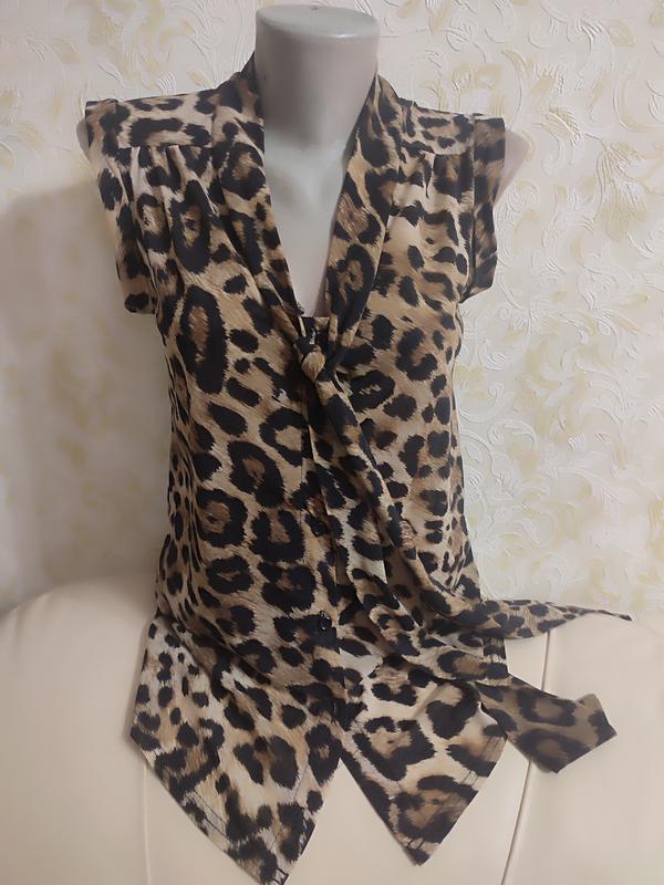 Легкая литая блуза трендового принта. Длина 67см, плечи 40см, полуобъем груди 46см, полуобъем талии 45см.