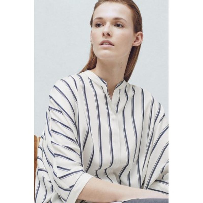 Блузка из коллекции Mango. Модель выполнена из натуральной ткани. Имеет круглый вырез. - Свободный фасон. - Рукав три четверти. - Застегивается на пуговицы. - С разрезом. - Рукава-кимоно. - Параметры: размер ПО грудная клетка/пояс M 64/66 Размер указан М, но идет на больше Узор: полоска Состав:Основной материал: 100% Вискоза Код произодителя: 61033037