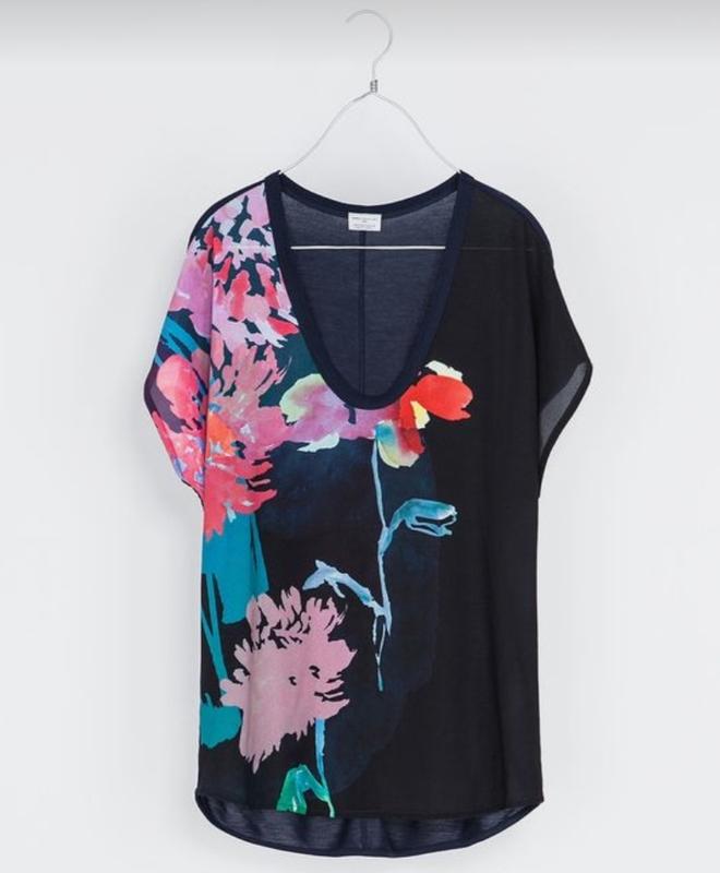 Футболка от Zara 38 размер темно-синяя с цветочным узором очень хорошее качество
