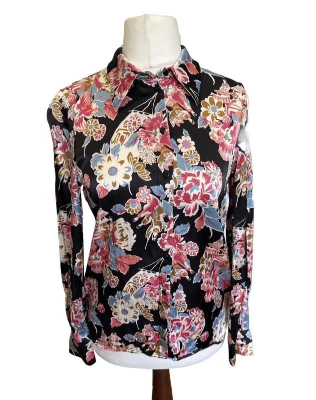 Стильна цікава квіткова блуза, атласна, виглядає вишукано та стильно