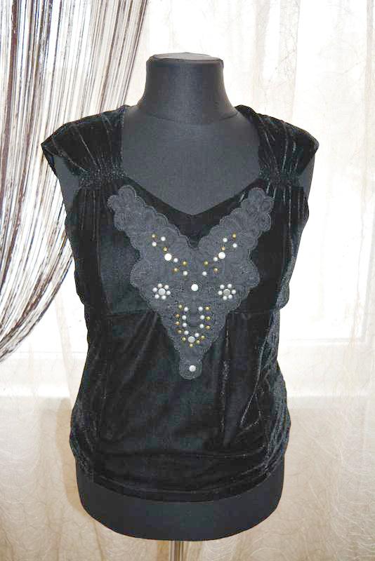 Только 100% предоплата на мою карточку, через безопасную оплату не работаю, исключений не делаю. Если не подходит - ищите другого продавца. №5а. Моделирующая вечерняя бархатная, велюровая стройнящая блузка, кофточка. размер указан 40, т. е наш 46, но для примера одета на манекен 52 размера - тоже сидит отлично! Полностью на подкладке. Бархат плотный мягкий, нежный. Отрезная под грудью, за счет чего приподнимает грудь, вертикальная аппликация стройнит и прочерчивает фигуру. Бретели присобраны, что тоже делает ее элегантной и вечерней. Сбоку на молнии.Отличная вещь на для Вашего гардероба! Замеры: ПОГ 48-55см, под грудью 46-49см, 51-55см, (замеры в спокойном и растянутом состоянии, плечи 46, длина от подмышки 36см, длина изделия 59см.