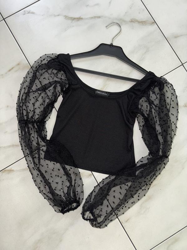 По всем вопросам обращайтесь в ЛС. Женская ажурная сеточка блуза кофточка топ с длинными сетчатыми рукавами бренда Cameo Rose в состоянии новой. Без дефектов и нюансов, без следов носки. Размер указан XS, но подойдет и на S (36-38) - замеры по запросу. Цвет - черный. Стильная нарядная блуза блузка сеточка кофточка, отличный нарядный вечерний вариант. Тоненькая легенькая. Материал хорошо тянется. Производство Марокко. При необходимости скину больше фото. Возможна пересылка на примерку и возврат. Пересылаю по предоплате любой почтой или безопасной оплатой Шафа. Отправка в день заказа. Замеры: Длина от плеча до низа - см Ширина в груди - см Ширина в талии - см (спинка на резинке) Длина рукава от плечевого шва - см