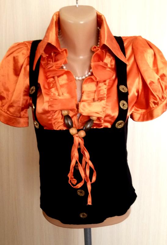 Нарядная блузочка на стройную девушку р.44/46 .Очень красиво сшито.Изумительно смотрится. Блузочка новая : верх плотный стрейчевый атлас. От груди корсет, сбоку молния. Сверху бретели ввиде портупеи. Ткань стрейчевая,глубокого черного цвета,прекрасно тянется .Замеры в свободном состоянии : плечи 38, рукав 20, длина 52, п/о груди 40 , п/о талии от 37 до 47 см. В моих обьявлениях есть юбка из черной стрейчевой ткани,пояс сзади на корсете.Изумительно смотрятся вместе. Пересылаю.