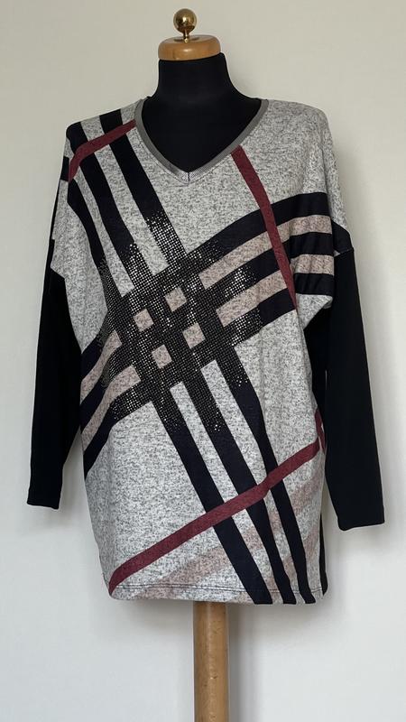 Блузка трикотажна з геометричним візерунком і стразами azra