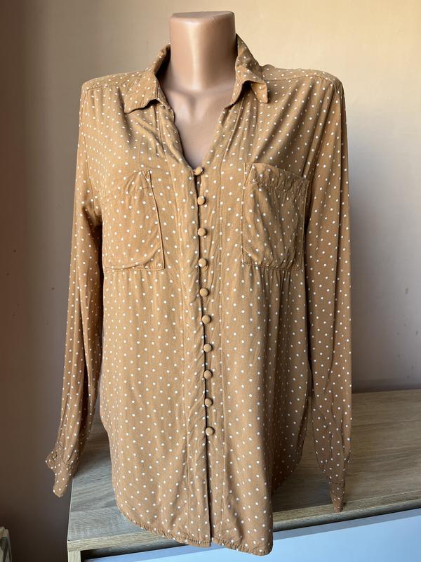 Блуза в мелкий горошек на пуговицах Приятная ткань Страна производитель Вьетнам Есть запасная пуговица