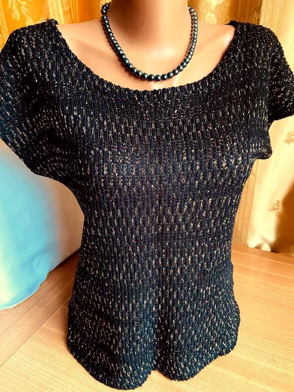 В'язана блузка із золотою ниткою від бренду/Aislinn/Німеччина. Красива блузка спущений рукав, м'яка, тонка в'язка (9 фото) приємна до тіла. Розмір S-M, виміри на фото. Одягалася рази два, маловата, продаю дешево. Увага!!! Фото на тілі НЕ РОБЛЮ!!! Замовлення через кнопку "КУПИТИ"-лише після узгодження всіх нюансів особисто зі мною, щоб потім не виникало жодних непорозумінь! Безпечної оплати! НАЛОЖКИ! і ПОВЕРНЕННЯ! - Немає!!! Купівля: 100% передоплата на карту monoбанка. Відправка:в день замовлення або на наступний день,при повній передоплаті. Доставка: за рахунок покупця!!! Якщо Вам потрібні додаткові інформ.фото чи виміри, завжди надам. Дякую, за розуміння та приємних покупок!