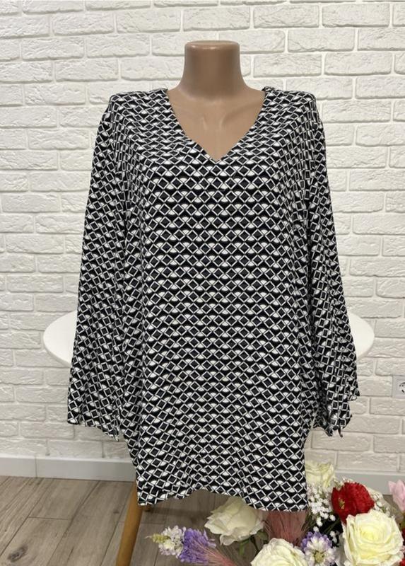 Блузка просто бомба,любов с первой примерки. Красива,єфектна. Яскравий принт. Модель удобная. Рукав свободный свободный Ткань приятная на ощупь,вискоза 100% Дефектов нет, в состоянии новой вещи. Размер :50 ВЫМЕРЫ: 🔴 ДОВЖИНА:72 СМ 🔴 ОТ ПЛЕЧА К ПЛЕЧА:43 СМ 🔴 ДЛ.РУКАВА:53 СМ 🔴 ГРУДИ ПОВНА ШИРИНА:114 СМ 🔴 ТАЛІЯ ПОВНА ШИРИНА:114 СМ