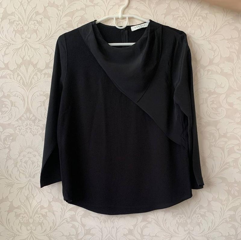 Красивая, черная блуза от люксового бренда Sandro Paris. С комбинированным составом - вискоза и шелк. Сзади есть молния. Размер указан 2, что соответствует М размеру. Смотрите все замеры на фото. Состояние отличное, без нюансов. Оплата 100% на карту Отправка Укр или Новая почта