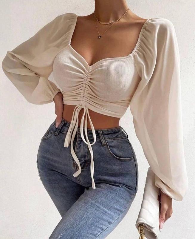 🥀Новинка🥀 Фото РЕАЛ⚠️ Топ Код 083 (43) Ткань: рубчик Турция, шифон Цвета: черный, белый, бежевый Размеры: 42-46 Универсал Универсальный топ для тебя. Подчеркивает твою женственность. Идеально сочетается с брюками, джинсами и юбками. Регулировать длину возможно, как тебе нравится. Рукава на резиночке. Базовые оттенки.