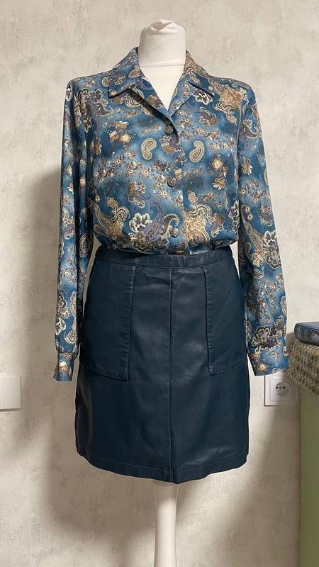 Очень красивая и изысканная винтажная блуза с узором, C Collection. Я за ней поставляла на аукционе) Плотная ткань, прямого кроя, хорошо держит форму, не мнется, очень красивые пуговицы. На фото блуза с юбкой из эко-кожи, я так надевала, было очень круто, но пока нейся блуза на меня уже малая(( ПОГ - 55 см ПОТ - 55 см Длина рукава от плеча - 59 см Длина по спинке - 66 см Размер: L