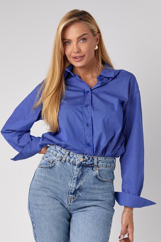Смугаста жіноча сорочка oversize - синій цвет, s (є розміри)
