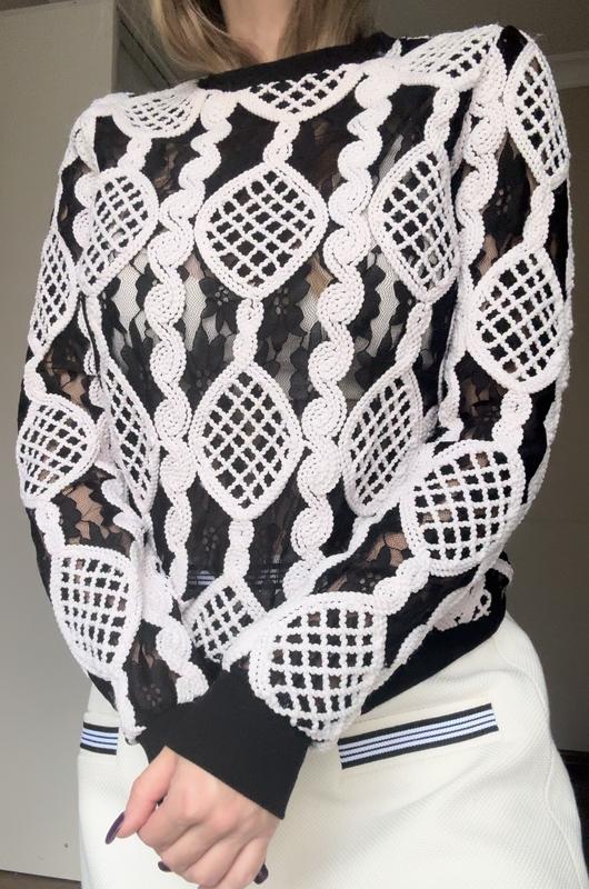 Оригинальная кофта с элементами кружева. ПОГ 50( спон.) Низ манжет 38 (тян.) Длина изделия по спинке 57 Рукав от плечевого шва 65
