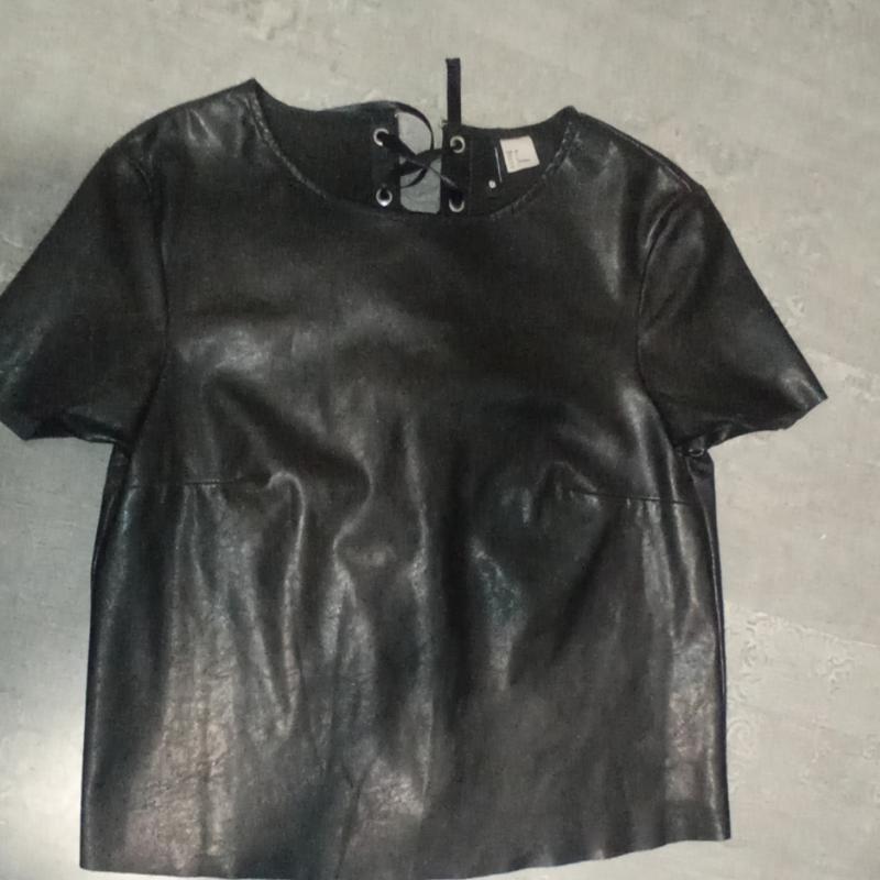 Блуза кожзам,с красивым переплётом на спинке,есть спереди небольшой дефект,трещинка маленькая