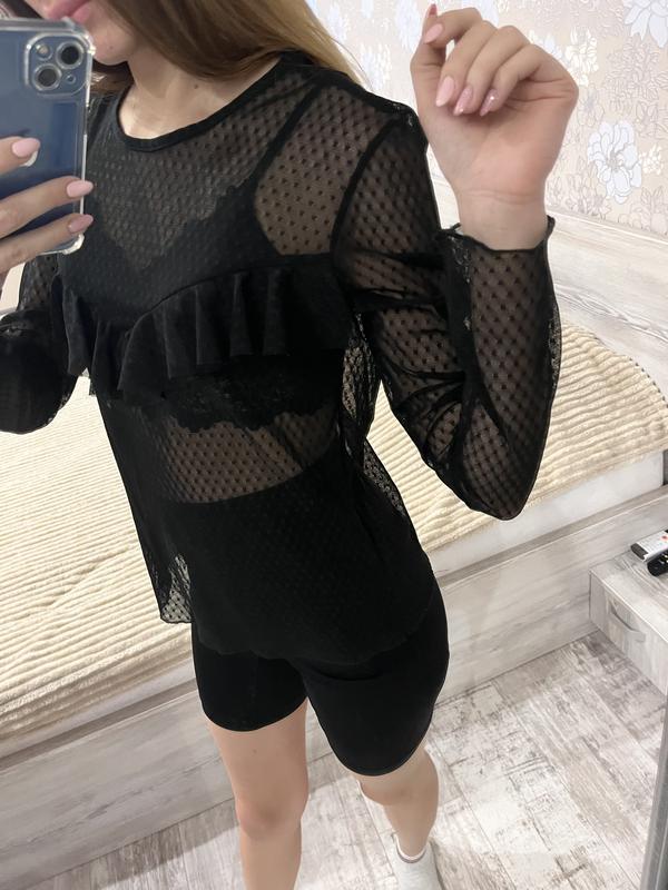 Красивая блуза черного цвета Идет сеткой, отлично будет смотреться под черный бюст или майку Размер: S-M Замеры: Длина плеча- 13 см Длина рукава- 74,5 Груди - 45 Талия -43 Длина по спине- 57 Переходите в профиль, выбирайте и заказывайте 📦В наличии много вещей по низким ценам 🤩 Отправка осуществляется в день заказа 📩