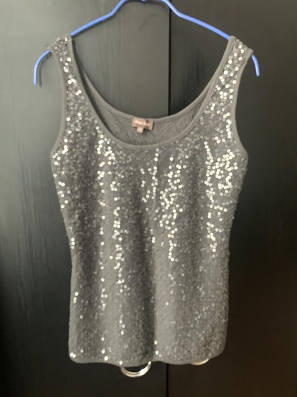 Блузка с пайетками серого цвета. Длина 61см, ПОГ-42 см