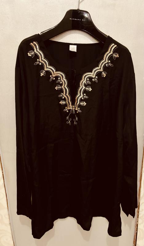 Блуза з вистрачкою/ чорна з золотом. Великий розмір.