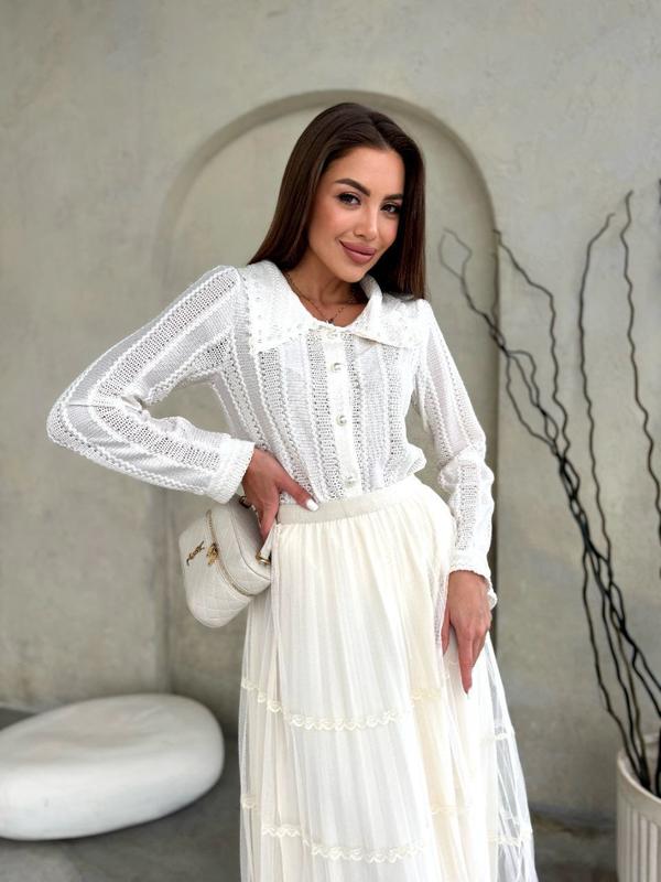 Невероятная красивая кружевная блуза с воротником украшенным жемчужинками😍 Мод: 2463 Цвет: белый, айвори, черный Размер: универсальный с/м Тканина: бавовна, мереживо Цена 799 грн🌷 Невероятная изящная шифоновая юбка 💞 Стильный элемент вашего гардероба🙌 Мод: 2433 Цвет: айвори Размер: универсальный с/л Ткань: фатин, сетка на атласной подкладке Цена 940 грн🌷