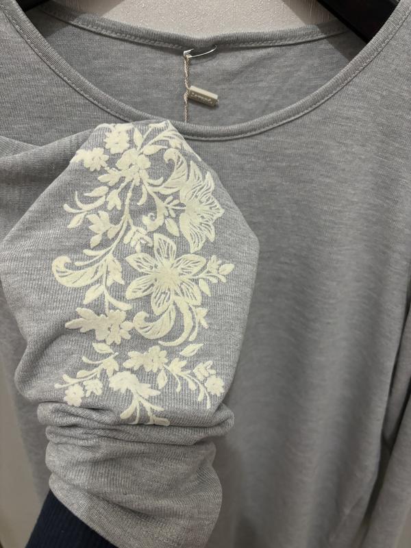 Блуза довгий рукав трикотаж на рукавах аплікація бархат квітковий принт вільного крою гарно буде пасувати під любий низ одягу, під любий стиль кежуал, спорт.